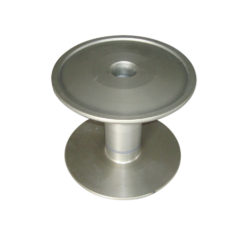 經(jīng)編機(jī)對(duì)原料和織物品種的適應(yīng)性廣,機(jī)器生產(chǎn)率較高,因而發(fā)展較快。經(jīng)編機(jī)中,有一個(gè)比較重要的配件---經(jīng)編機(jī)盤頭。不同經(jīng)編機(jī)使用的經(jīng)編機(jī)盤頭是不一樣的。經(jīng)編機(jī)盤頭,盤管兩端分別固定有兩盤片,其特征在于:所述的兩盤片和盤管兩端分別設(shè)有用于固定的螺紋,盤管兩端螺紋旋入兩盤片中的螺紋;盤管兩端螺紋處的外徑小于盤管中段的外徑,兩盤片上分別具有連接段,連接段的外徑與盤管中段外徑相同。
